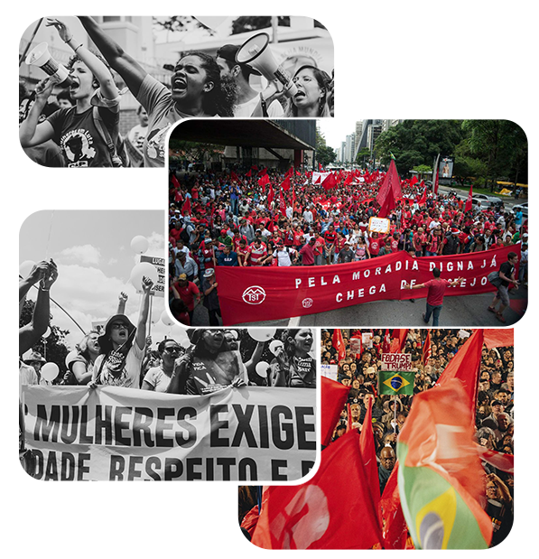 Atuamos por um modelo de sociedade em que os trabalhadores, as comunidades e os movimentos populares participem ativamente das decisões que afetam suas vidas.